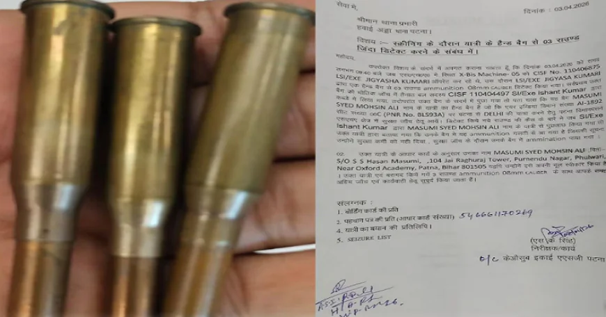 BREAKING : पटना एयरपोर्ट पर यात्री के बैग से मिले 3 जिंदा कारतूस, मचा हड़ंकप, हिरासत में लिया गया