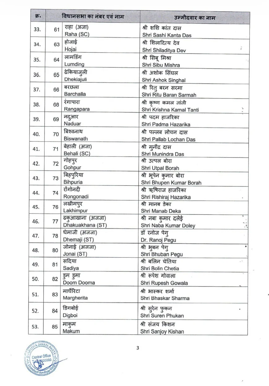 असम विधानसभा चुनाव के लिए बीजेपी ने जारी की 88 प्रत्याशियों की पहली लिस्ट, CM हिमंत यहां से लड़ेंगे चुनाव, यहां देखें पूरी लिस्ट