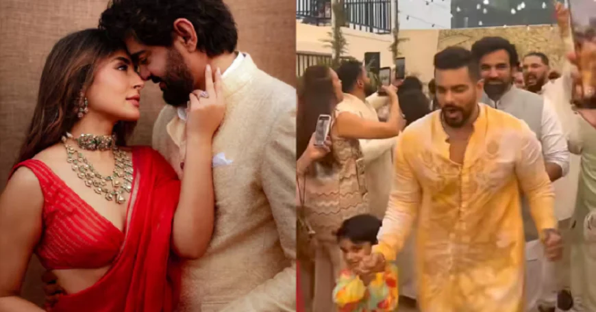 एक खास वीडियो में अंगद बेदी, फरहान अख्तर, युवराज और सहवाग को मशहूर गाने 'फॉरएवर' पर डांस करते हुए देखा गया। ये सभी सितारे नाचते-गाते हुए दूल्हा-दुल्हन को पार्टी एरिया तक ले गए, जहां कृतिका और गौरव एक-दूसरे का हाथ थामे बेहद खुश नजर आ रहे थे।